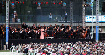 Klassikkonzert in der Emsaue Münster hat die klassischen Konzerte vor dem Schlaunschen Schloss, Rheine die Operngala am Kloster Bentlage, und Greven reihte sich mit der „Italienischen Sommernacht der Klassik“ in diese illustre Reihe der Open-Air-Veranstaltungen ein. Der Samstagabend an der Emsaue war für die über 1000 Besucher ein musikalischer Genuss der Extraklasse. Selbst das Wetter spielte mit, so dass man sich vom mediterranen Flair und stimmungsvollen Ambiente dieses glanzvollen Höhepunkts der Veranstaltungen an der Ems bezaubern lassen konnte. Die „Neue Philharmonie Westfalen“ unter ihrem Dirigenten Heiko Mathias Förster, bekannt auch durch die Grevener Aulakonzerte, ist eines der renommiertesten Orchester, dessen internationaler Ruf von Peking bis nach Modena und Zürich reicht. Dirigent Förster führte charmant in die einzelnen Werke ein, stimmte das aufgeschlossene Publikum ein auf die großartige Musik. Das Programm war mit viel Feingefühl zusammengestellt worden, umfasste berühmte Werke italienischer Komponisten des 19. Jahrhunderts aus Oper und Ballett. Gleich drei Ouvertüren zu Opern von Guiseppe Verdi verwöhnten mit ihrer exzellenten Ausführung die Ohren des Publikums. „Die Macht des Schicksals“, „Nabucco“ und „Die sizilianische Vesper“ sind hochdramatische Kompositionen Verdis, bestes Beispiel italienischer Opernkunst. Das Orchester gestaltete die Ouvertüren auf einem spieltechnisch sehr hohen Niveau, konnte sich ganz der Gefühlstiefe und strahlenden Erscheinung dieser Musik widmen. Die Tempelszene aus „Aida“ erinnerte durch ihre kraftvolle Wiedergabe an die Aufführung vor den Pyramiden von Gizeh. Bei der Ballettmusik „Danse della ore“ aus der Oper „La Gioconda“ von Ponchielli legten die Musiker ihre ganze Spielfreude in die lebendige Darstellung dieser programmatischen Musik. Als Gastsolistin war die Sopranistin Hrachuhi Bassenz gewonnen worden, die mit ihrer Stimme sofort den Weg zu den Herzen des Publikums fand. Bei der Arie der Leonora „Tacea la notte“ aus Verdis Oper Der Troubadour“ zeigte sie sich als routinierte Künstlerin, die trotz hoher Anspannung selbst kleinste Schwierigkeiten souverän überwand. Selten hat man die Arie der Mimi „Si, mi chiamano Mimi“ aus Giacomo Puccinis Oper „La Boheme“ so ausdrucksvoll gehört wie an diesem Abend. Gesangskultur und Timbre von Hrachuhi Bassenz faszinierten vor dem wunderbar ausgewogenen Orchesterklang, sie zeigte italienische Belcanto- Kunst auf höchstem Niveau. Mit der Kavatine der Eleonora aus Gaetano Donizettis Oper „Il Furioso all’isola die San Domingo“ zeigte sie sich als wandlungsfähige Künstlerin mit großer Präsenz. Als musikalisches Bonbon schloss dieser Opernabend mit dem „Capriccio italien“ von Tschaikowsky, dessen Esprit mitriss. Standing Ovations“ gab es für diese Oper-Gala der Spitzenklasse, die das Ansehen Grevens weit über die Stadtgrenzen hinweg bedeutend prägen wird.