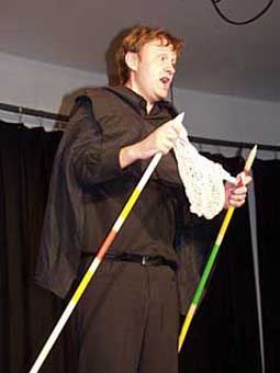 Manne Spitzer in der Kulturschmiede Manchmal entwickelt sich ein Abend ganz anders als geplant. Man geht wie am Samstagabend zum literarischen Kabarett in die Kulturschmiede, voller Erwartung auf den von zahlreichen Auftritten bei der alternativen Karnevalssitzung Kappe App bekannten Manne Spitzer. Nach gut zwei Stunden tritt man den Weg nach Hause an, schaut in die Fernsehzeitung und träumt dann von den verpassten Film- Highlights auf zahlreichen Fernsehkanälen. Jeder Künstler hat gelegentlich einen "nicht so gut gelaufenen Abend", fragt sich hinterher, warum alles so gelaufen war. Manne Spitzer wollte ja eigentlich nur spielen..., aber für wen? Denn sein Publikum erreichte er in der Kulturschmiede leider nicht, obwohl sein Programm seit der Premiere 2002 im Kreativhaus doch ausgereift genug sein sollte. Vielleicht war es aber auch genau die Routine, die ihm zum Verhängnis wurde. Denn eigentlich waren viele der Programmpunkte durchaus pointenreich, war sein Umgang mit Sprache virtuos und einfühlsam. Auch schauspielerisch schlüpfte er überzeugend in diverse Rollen von Gott, dem Sensemann bis zum philosophisch inspirierten Bankräuber. Er zeigte sich verliebt in seinen Schutzengel, den er durch gefahrvoll inszenierte Katastrophen fast in den Wahnsinn trieb, nur um ihm wieder zu begegnen. Auch seine Einbeziehung des Publikums bei der "Jagd nach einem blinden Passagier" hatte schon etwas. In den visionär angelegten Dialogen mit seinem Bankräuber-Kollegen Matthias K.-B. ging es von Nietzsche, Kant bis um Betrügen beim russischen Roulette. Dass Gott oder der Weltgeist unter Debilität litt, seine Schöpfung mit Unterstützung des Erzengels erst im Fernglas wiedererkannte, war schon ein interessanter Ansatz. Wikinger-Riesen-Mikado, "Mensch-Ärgere-Dich-Nicht" für den ausgereiften Single mag ja eine amüsante Freizeitbeschäftigung sein. Aber irgendwie ist Manne Spitzer, dessen Dialogfähigkeit in den Sequenzen am stärksten war, ohne ein reales Gegenüber um vieles schwächer. Man sehnt sich nach Markus van Hagen oder andere Weggefährten aus Manne Spitzers provokanteren Zeiten, als Worte wie skurrile Spielbälle hin und her flogen, Kabarett bissig und bisweilen bösartig wie am Seziertisch den Blick fürs "wirklich Wahre" eröffnete. Spitzers solo- Kabarett birgt in dieser Form die Gefahr, nur für Insider zu wirken. Wie literarisches Kabarett-Theater in ausgefeilter Inszenierung daherkommen kann, zeigt ja die Münchner Lach- und Schießgesellschaft mit ihrem "Jenseits von Oz"., das in Münster schon große Erfolge einheimste. Viel Engagement von allen Akteuren ist am Samstagabend leider verpufft, das Publikum wollte auch bezeichnenderweise keine Zugabe. Man darf da nur den Mut nicht verlieren, es kann nur aufwärts gehen. ![]()