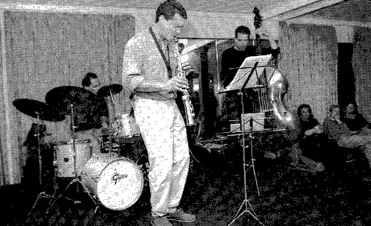 Jazz-Trio im Kulturmagazin Wir wollen hier eigentlich ein bißchen spielen", antworten die drei Jäzzer artig auf die Frage, wo denn ihre Eintrittskarten seien. Sagen es, schreiten zur Bühne und musizieren. Zunächst erklimmt der Schlagzeuglehrer Wolfgang Ekholt die Bühne, rückt Becken, Trommel und den abgewetzten Lederkoffer mit dem exotischen Schlagstock- Vielerlei zu recht. Es folgen Ansgar Eisner, der im Laufe des Abends das Saxophon bis zum Ende seiner Möglichkeiten bläst, und der Kontrabassist Hartmut Kracht, dem jene ambivalente Haßliebe nicht anzumerken ist, die Autor Patrick Süsskind zwischen dem Spieler und seinem Instrument bemerkt haben will. Behutsam führt das Trio das Publikum an einen Jazz-Stil, der bar jeder Verfremdung und Überlappung durch heute immer wieder untergemixte Rock, Funk oder Latin-Stile ist, und nur das Pure liebt. Eine Komposition des leisen" .Bassisten Dave Holland "bietet den Einstieg in einen vielseitigen Jazzabend, der sich vor allem dem Modern Jazz der 50er und 60er Jahre verpflichtet fühlt. Jazzkomponisten wie Charly Parker oder Duke Ellington sind auch in den eigenständigen Versionen des westdeutschen Trio bestens aufgehoben. Doch Jazz pur spielen die versierten Musiker nicht nur bei den Standards sondern auch bei den Eigenkompositionen, die alle drei beisteuern. Der Spielweise der Musiker kommt die Trio-Formation entgegen. In ihr entwikkeln sich hörbar - für ein stark gefordertes Auditorium nicht imm&i nachvollziehbar - die extremen Möglichkeiten der Improvisation bei dem gleichzeitig gelungenen Versuch, wieder im Ausgangsthema zueinanderzukommen. Bei einem Dozentenkonzert vor einem Jahr haben sich die drei gefunden; musikalisch können sie seitdem nicht mehr voneinander lassen. Probleme im Zusammenspiel sind an diesem Jazz- Abend, den die Kulturinitiative passend mit der Ausstellungseröffnung von Usch Schüllenbach zusammenfügte, eher im Technischen begründet. Kontrabassist Hartmut Kracht vermag sich gegenüber seinen deutlich laut-tönenderen Mitspielern nicht genug Gehör zu verschaffen. Schade, denn seine Soli sind wahrlich virtuos. Probleme dieser Art kennt Schlagzeuger Wolfgang Ekholt nicht. Die nur sparsam installierten Komponenten seines Schlagzeugs beherrscht der münstersche Musikschuldozent perfekt. Ob er mit dem Besen über die. Bespannung seines Beckens rührt oder rhythmisch hart die Stöcke führt - Ekholts Schlagzeug-Sound ist für Jazzer ein unverzichtbarer Hörgenuß. Als die drei nach zweistündigem Set- die Bühne verlassen, sind die 70 Zuhörer sicher: Das Geld für die Eintrittskarten war gut angelegt. ![]()