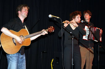 Finsbury Park in der Kulturschmiede Für die Freunde guter Folkmusik hatte die Kulturinitiative am Samstagabend ein besonders eindrucksvolles Paket geschnürt. GoodNightFolks und Finsbury Park sind in Greven bestens bekannt und präsentierten neben bekannten Klassikern auch jede Menge Eigenkompositionen. GoodNightFolks spielte dabei als Vorgruppe, ihr Heimspiel entwickelte sich zu einer rasanten Reise in die Welt der grünen Insel. Ride en, Clare Island oder Sailor's hornpipe verwandelten die Kulturschmiede in einen irischen Pub, da fehlte eigentlich nur das frisch gezapfte Guinness. Sie zeigten eine große Bandbreite, beherrschten traditionelle Rigs und Trinklieder genauso wie lyrische Balladen. Auch für das wunderbar eindrucksvoll interpretierte Dat du min leefst büst war bei ihrem Konzertauftritt Raum. Damit erreichten sie die Herzen der über 120 Zuhörer. Nach fast vier Jahren feierte man dann ein Wiedersehen mit Finsbury Park. Mit Sweet Sir Galahad von Joan Baez eröffnete das Trio, da entstand sofort ein direkter Kontakt. Selten hört man diese Ballade so ausdrucksvoll gesungen wie von Ines Caffier. Ihre warme Stimme prägte den Abend, faszinierte mit einem ganz besondern Timbre. Finsbury Park hat sich zu einer Gruppe mit einem ganz persönlichen Stil entwickelt. Traditionelle Balladen aus Folk und Country kleideten sie in ein neues Gewand, ihre Arrangements verrieten ein fundiertes Wissen und detailgenaues Arbeiten. Einzigartig wie der namensgebende Fleck Natur in Londons Häusermeer präsentierten sie Musik mit charismatischer Ausstrahlung. Dieser Labsal für die Seele tat gut. The world can wait war wie ein Synonym, das Publikum wurde bei den Erzählungen von unerfüllter Liebe, Sehnsucht und Verzweiflung der Zeit entrückt. Gitarrist Volker Hauswald spielte mit einem Stil, der an Arlo Guthrie erinnerte. Ungekünzelt und echt, ohne übertriebene Ausgestaltung. Finsbury Park verband moderne Einflüsse mit traditionellen Elementen, facettenreich schufen sie ein eigenes Klangbild. Morning Drew und Silly Dream als Eigenkomgositionen zeigten die sensile Anlehnung des Trios an ihre Vorbilder auf hohem musikalischen Niveau. Man lauschte gebannt, konnte bei dieser wunderbaren Musik den Alltag vergessen. Gesang, Gitarre, Querflöte und Akkordeon wenn Volker Hauswald, Ines Caffier und Volker Müller sich auf ihre akustischen Wurzeln besannen, waren sie schon gut. Wenn dann die elektrische Gitarren und das Keyboard die Klangmöglichkeiten erweiterten, faszinierte dieses gleichberechtigte Nebeneinander von Natürlichkeit und Synthetik. Folk jenseits jeder Eintönigkeit spielte Finsbury Park, jederzeit für eine Uberraschung gut. Da vermittelten die zeitlos klingenden Balladen unmittelbar Bilder von weiten Landschaften, schmeckte man die raue salzige Meeresbrise. Mit ihrer Musik und der sympathischen Art hatten sie alle für sich gewonnen. Der Abend war geprägt von einer fast intimen Atmosphäre, ein Wiedersehen unter Freunden. ![]() |