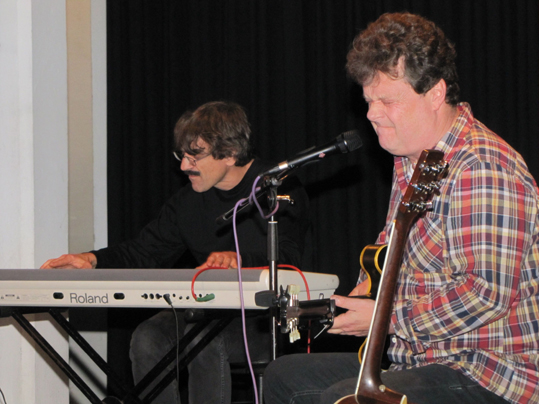 Einen nachhaltigen Eindruck hat das Blues-Duo Ignaz Netzer und Thomas Scheytt im November 2010 in Greven hinterlassen. Die Begeisterung über die Musiker, denen der Ruf als Großmeister des klassischen Blues vorauseilt, war so groß, dass man in der Kulturinitiative den Wunsch verspürte, sie erneut in die Emsstadt zu locken. Am Freitagabend betraten Netzer und Scheytt vor knapp fünfzig Zuschauern in der Kulturschmiede die Bühne und untermauerten ihren Anspruch. Wir wissen, dass sie gut sind, Qualität setzt sich manchmal einfach durch, bestätigt Egon Koling, Vorsitzender der Kulturinitiative. Und dass es ganz ohne große Show und aufwendiges Equipment geht, stellten Netzer und Scheytt unter Beweis. Einfach, bodenständig und dennoch tiefsinnig, genauso wie der Blues selber, wirkten die Musiker. Die Lust und Freude an ihrem Repertoire, das klassische Bluesstücke wie Good Morning Blues, Boogie-Woogie, den New Orleans Blues oder selbst komponierte Werke umfasst, war deutlich zu spüren. Besondere Spezialität des Duos, das bereits seit 26 Jahren gemeinsam spielt, ist der Blues der 20er und 40er Jahre. Energiegeladen griff Thomas Scheytt in die Tasten, lächelte und zuckte mit den Beinen. Ruhiger ging es Ignaz Netzer an, der als Sänger mit typisch-rauchiger und tiefer Blues-Stimme, Gitarrist und Mundharmonikaspieler seine Vielseitigkeit unter Beweis stellte. Würze erhielten die Stücke durch Einbindung der Zuschauer, die sich Netzer auf die Fahnen geschrieben hat. Insbesondere seine bissig-ironischen Kommentare sorgten für Heiterkeit, etwa wenn er die schwäbische Identität mit echten Südstaatlern umschrieb oder von seiner attraktiven Lebenspartnerin schwärmte, die sich als seine Katze erweist. Flugs wurde auch der Titel Let the good times roll unter dem Titel Lass die Sau raus ins Schwäbische eingebürgert. Das gelungene Zusammenspiel der beiden Musiker aus den Südstaaten quittierte Grevens Bluesgemeinschaft mit lang anhaltendem Applaus. ![]()