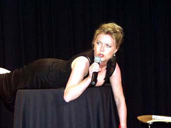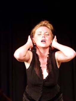 Simone Solga in der Kulturschmiede Simone Solga, die Wahlmünchnerin mit dem Hauch heimatlichen Dialekts in der Stimme, betörte am Samstagabend in der Kulturschmiede nicht nur den "Herrn im weißen Hemd" mit dem Flanie. In über zwei Stunden virtuoser Sprachlichkeit mit kabarettistischem Seziermesser ließ sie einen wahren Feuerregen weiblicher Reize und hintergründiger Anspielungen auf ihr begeistertes Publikum los. Nicht provinziell, sondem provokant.gibt sie sich als Betreiberin eines aserbaidschanischen Restaurants "La Perla" mitten im Nirgendwo in der Mitte des neuen Deutschlands. Ihr selbst gewähltes künstlerisches Exil Aschersleben könnte idyllischer nicht sein. Jugendtreff am Stehtisch, Ratskeller und Swingerclub, das wunderbare Bild der makellosen Kleinstadt mit verwandtschaftlichemPolitfilz könnte malerischer nicht gezeichnet werden. Und auch Simone Solga hat dort einige Leichen im Keller, allerdings fein säuberlich konserviert in den 40 geleasten Kühltruhen. Zwischen dem Kampf mit Finanzamt, politischen Dorfhäuptern und allgemeinen Begleiterscheinungen als Zweitfrau eines Gynäkologen mit Ambitionen zu Höherem scheint sie sich zu einem männermordenden Monster im kleinen Schwarzen zu entwickeln. Vom Alltag zum Irrwitz schwingt sie sich mit lasziver Weiblichkeit auf in den Olymp satirischer Vielseitigkeit. Und als frech frivoler Profi braucht sie keine gescheiterten Neuwahlverköster, das Leben bietet ihr schon so genug Sprengstoff für ihre Perlenzündschnur. Sie setzt kokett im Plauderton an und entwickelt so ganz nebenbei einen Angriff auf Schöder und Doris. Sauerländer wie Merz liegen ihr auch nicht so am Herzen. Und wenn sie ihren messerscharfen Bush-Schröder-Stoiber-Hass-Rap vom Stapel lässt, gibt es pralles Politkabarett der Extraklasse. Virtuos bügelt sie Charaktere wie andere ihre Hemden. Von der leicht lebensuntüchtigen Enkelin im gastfreien Restaurant wird sie in Sekundenschnelle zur kettenrauchenden russischen Großmutter, die für alle Lebenslagen Plattitüden mit Niveau parat hat. Oder sie entführt in die Geheimnisse der höheren Mathematik in einem Vortrag, dessen irrwitzige Aneinanderreihung von Zeichen und Wundern selbst Einstein nicht hätte folgen können. Als ausdrucksstarke Antwort auf den asiatischen Wellnäss-Wahnsinn präsentiert sie den "nassen Lappen" als Entspannungsritual auf dem Bistrotisch. Vor ihr war niemand sicher, die Herren in der ersten Reihe sowieso nicht. Denen erklärt sie so ganz nebenbei den Sinn und Unsinn partnerschaftlicher Spielereien, betört sie mit Gesang und weiblichen Reizen. Was kann man von einer Frau anderes erwarten, die auf dem Friedhof Basilikum züchtet - schließlich hat sie diese paar Quadratmeter ja gepachtet für eine längere Nutzung. Ihr Umgang mit dem Fahrrad muss die Verkehrstauglichkeit erst auf den Gängen zwischen den Gräbern beweisen. Jede Pointe, jeder noch so beiläufig dargebrachter Seitenhieb sitzt bei dieser Spitzenkönnerin. Eine kleine Geste wird zum pathetischen Ritual. Schließlich hat sie ihr Metier von der Pike' auf gelernt, spielte seriöses Theater, sang im Musicalbereich, war bei der Leipziger Pfeffermühle ebenso dabei wie bei der Münchner Lach- und Schießgesellschaft. Und dann eben auch in Greven. Kulturschmiede klingt ja auch irgendwie nach Osten, wo der rote Stern untergegangen ist. Die KI hat dem begeisterten Publikum mit Simone Solga ein exquisites Geschenk gemacht.
